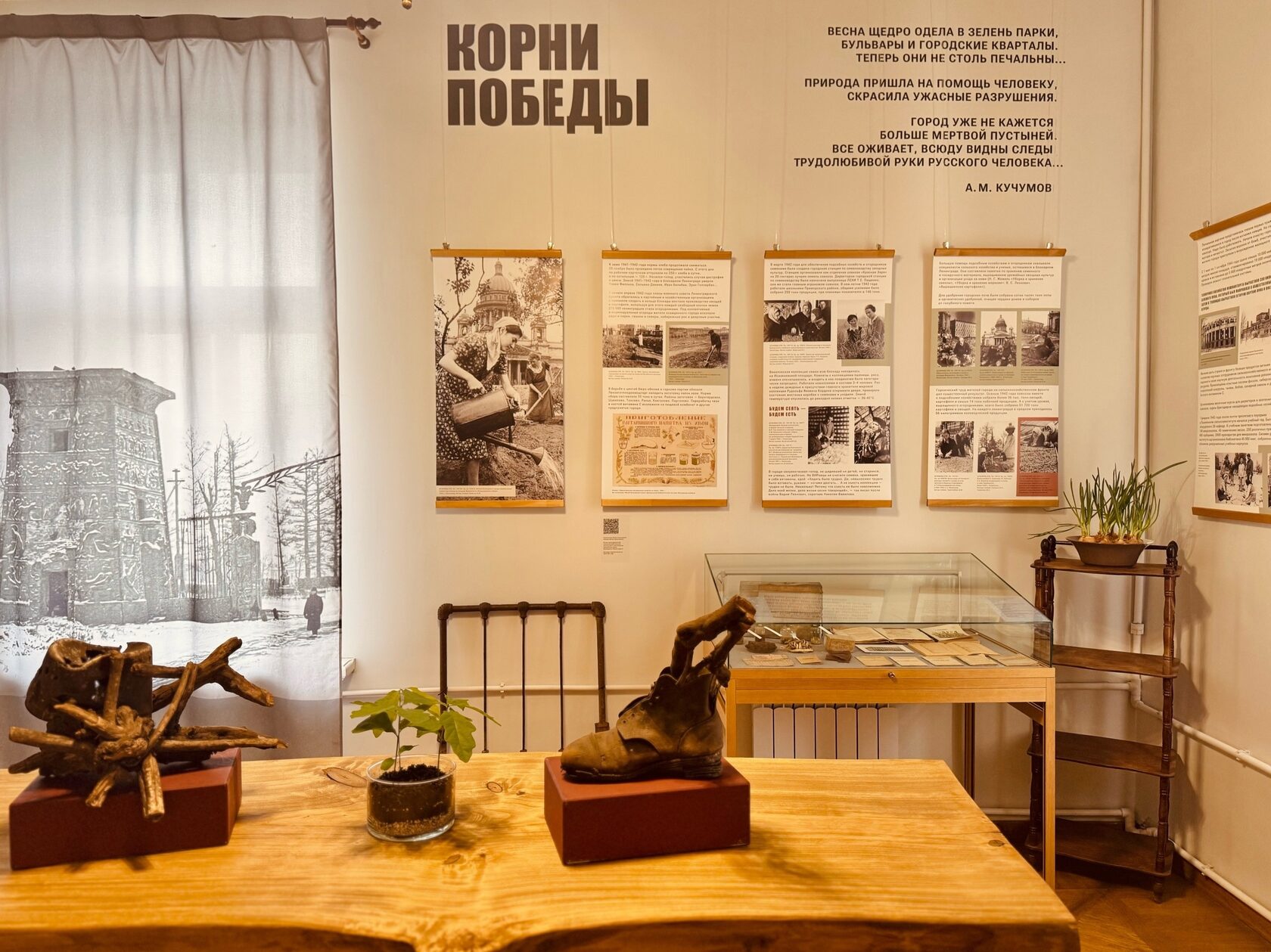 В минувшую пятницу в стенах Историко-литературного музея города Пушкина открылась выставка "Корни победы" к 80-летию победы советского народа в Великой Отечественной войне 1941-1945 годов. Центральная метафора выставки – это не только тема жизни, пробивающейся сквозь разруху, но и прямая отсылка к работе на земле как основе выживания и сопротивления в годы войны. Выставка покажет, что победа ковалась не только на фронте, но и в полях, садах, лабораториях, где люди, рискуя жизнью, обеспечивали страну продовольствием и сохраняли научный потенциал.