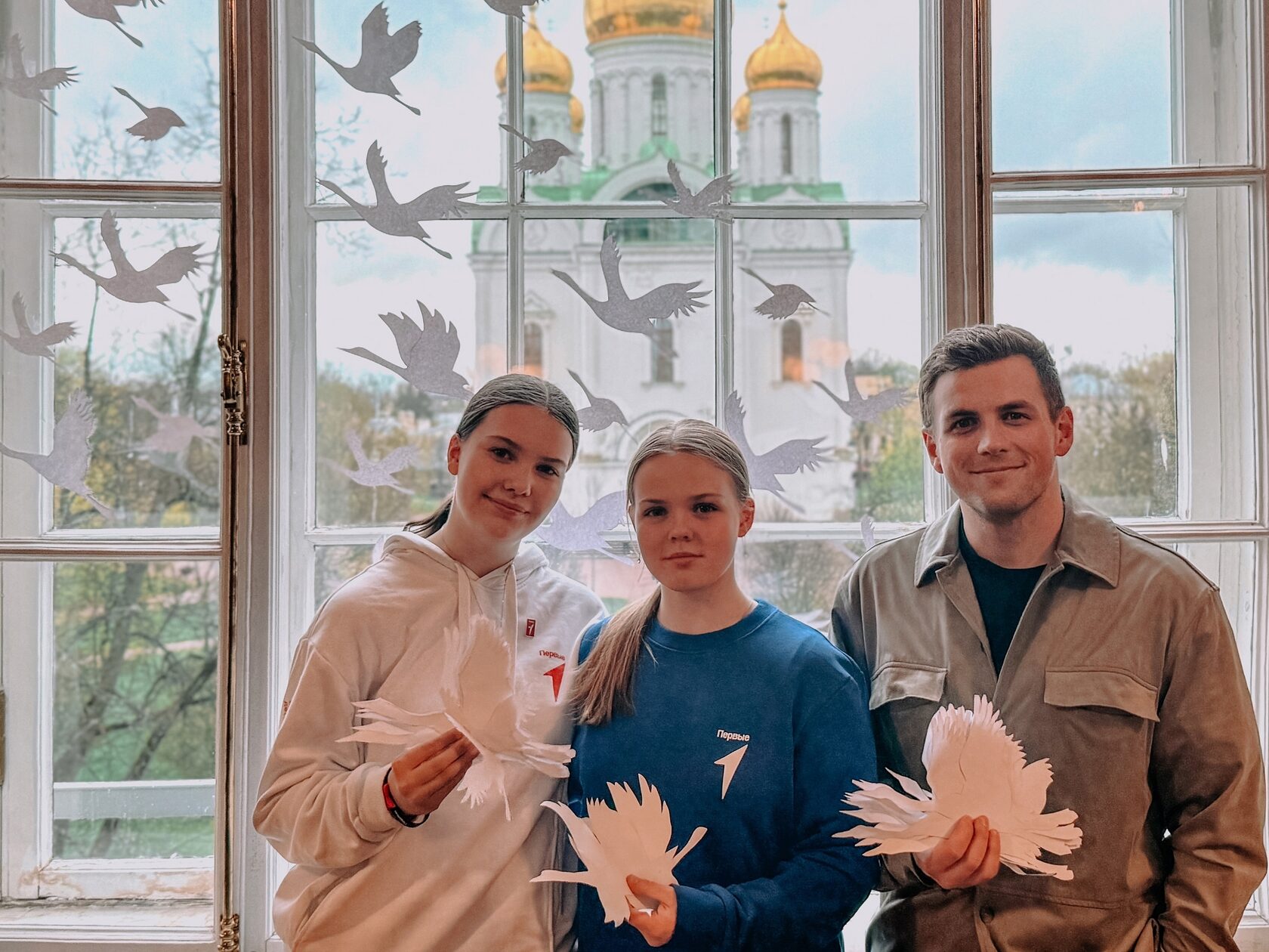 Благодаря помощи активистов Движения Первых Пушкинского района окна Историко-литературного музея города Пушкина украсили журавли в рамках Всероссийской акции «Окна Победы».